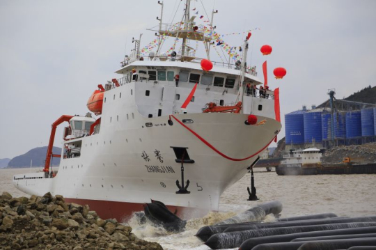 按照科研计划时间表,“张謇”号下水以后会尽快在离岸码头完成所有科考设备及实验室的组装调试,6月30日首航南中国海,8月在中国南海完成4000米无人潜水器的试验,今年12月冲击马里亚纳11000深渊海沟的无人深潜探测,至2019年实现我国载人深潜器在11000米深渊科考作业的梦想。