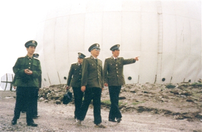 1990年郭锡林在世界海拔最高的雷达站——西藏甘巴拉雷达站(海拔5374米)检查工作。