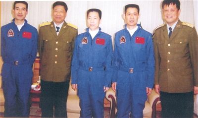 2003年中国首次载人航天飞行圆满成功,郭锡林与航天员在一起。