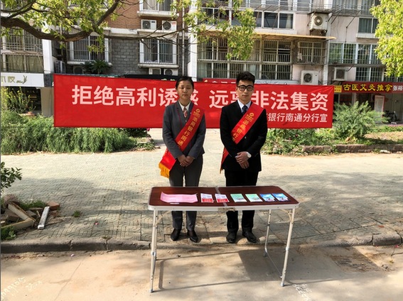 浙商银行南通分行将持续开展相关活动,提示客户远离非法集资,保障资金安全。