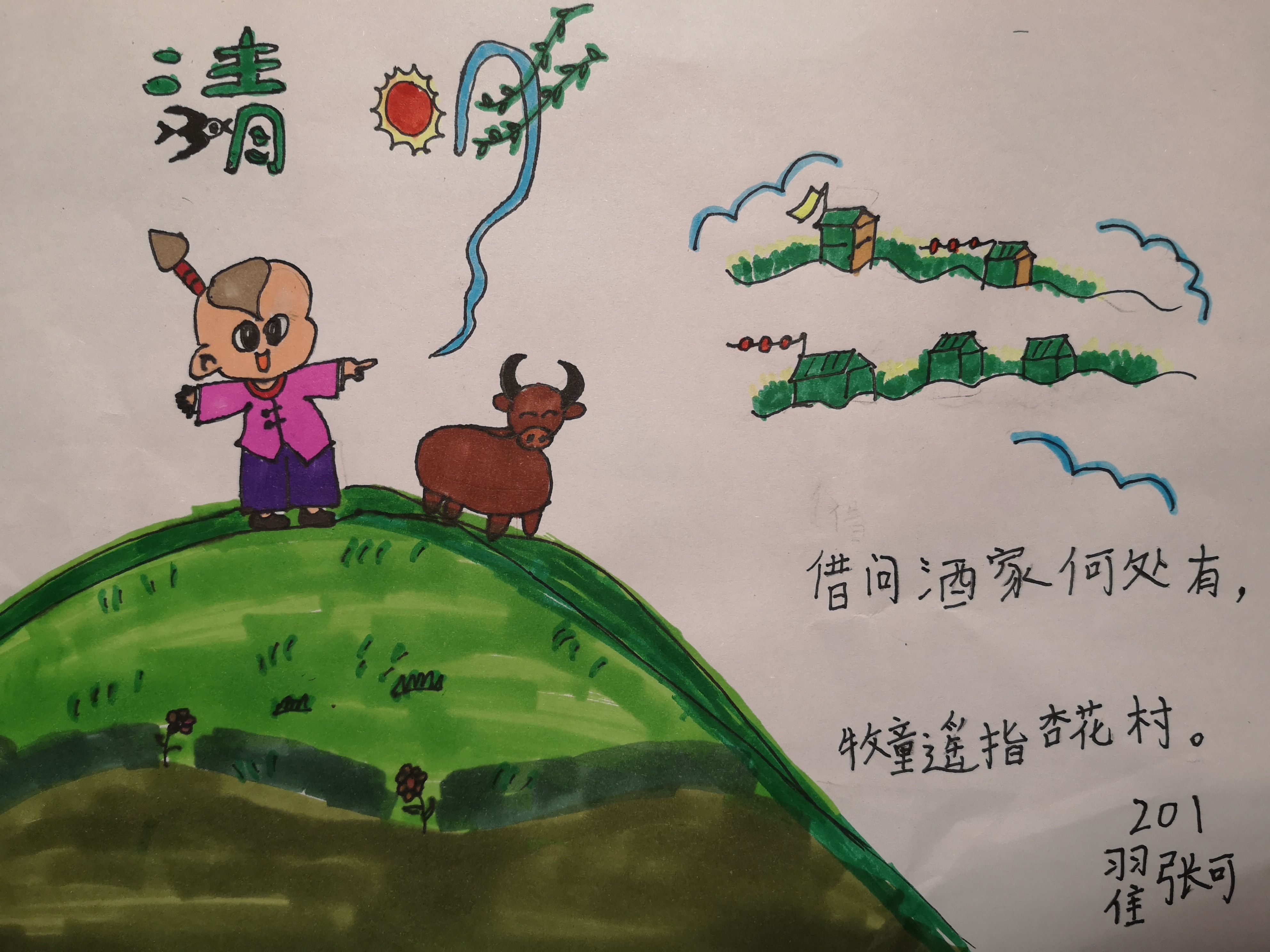 孩子们的作品不仅仅是慎终追远、礼敬祖先,更是生动的呈现了天清地明、万物复苏、充满希望的春天。