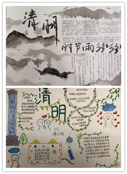 又是一年清明节,由于受新冠肺炎疫情影响,今年的清明节更是一个特别的节日,为了积极响应国家、省市、县提倡清明节文明祭扫的号召,为进一步弘扬和传承中华传统文化,引导学生崇尚英雄、缅怀先烈、继承遗志,深入践行社会主义核心价值观,如东县茗海中学党支部、团委组织了“茗海学子清明手抄报展评”活动,同时学校开展“网上祭英烈”等活动,倡导师生“文明祭祀“,过”绿色清明”。
