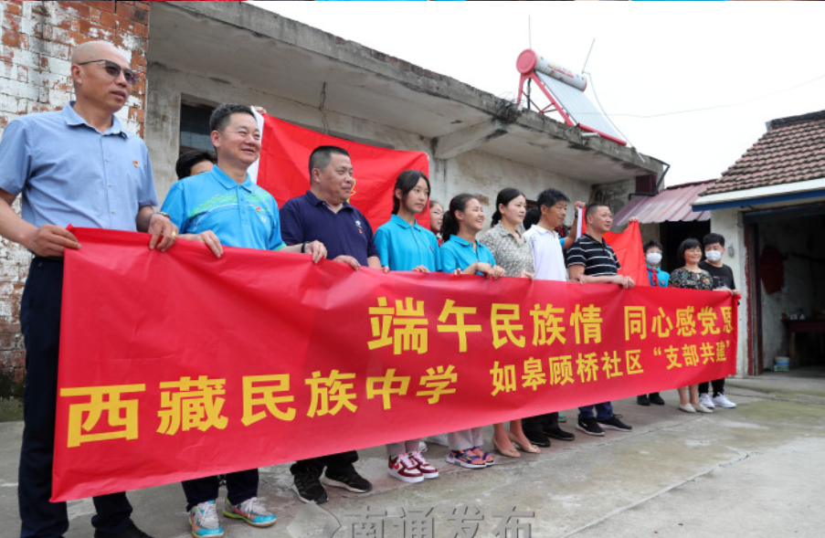 南通西藏民族中学师生与顾桥社区居民一起包粽子、剥花生,并慰问了十户结对帮扶的家庭,看望了97岁的老红军刘文祥,接受爱国主义教育。共建志愿服务旨在感受传统民俗,体验劳动之美,乐行志愿服务,传承红色基因 。