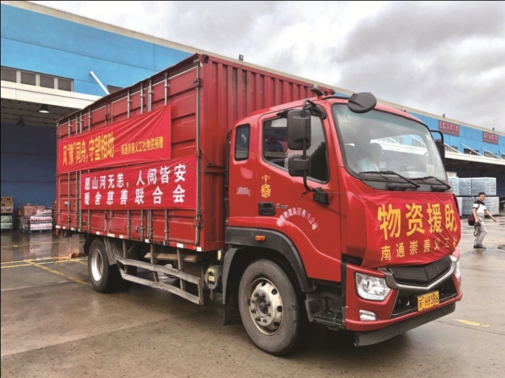 台风暴雨挡不住南通人民的爱心。27日傍晚5时许,由南通崇善义工社、南通暖舍慈善联合会、如东县青年慈善超市等爱心组织捐赠的17万余元物资从南通出发,星夜兼程运往河南新乡卫辉市灾区。这些物资包括灾区目前急需的抽水泵、冲锋舟、雨衣雨鞋、下水裤等,由南通林森物流免费承运。