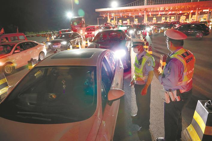 昨晚,公安、交通、卫生等部门工作人员在G15沈海高速小海收费站对车辆、人员进行查验。根据市疫情防控指挥部要求,全市范围内的40个高速公路收费站、7个市际国省干道交界点、5个沿江汽渡等道口恢复设置查验点,严防新冠疫情扩散。 记者许丛军