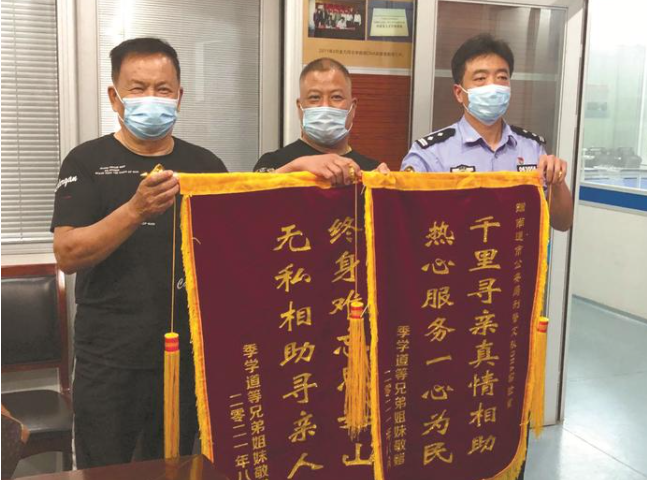 千里寻亲,真情相助。为感谢公安机关的无私帮助,季家人向两地警方送上了感恩锦旗。记者了解到,今年以来,南通公安已帮助20个家庭实现团圆梦。 记者张亮