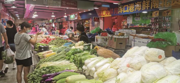 市区菜市场内蔬菜价格如何?当天傍晚,记者前往崇川区红星路菜市场一探究竟。红星路菜市场的喇叭广播一遍又一遍提醒着市民需要戴好口罩、测量体温,并提供行程码与健康码才能进入,市场工作人员站在门口,也在不断提醒着进入市民。菜市场内,蔬菜经营户刘老板告诉记者,台风天气以来,蔬菜价格有所上浮,但这属于正常现象。“往年高温时节,蔬菜价格一般都会上涨。”刘老板说。