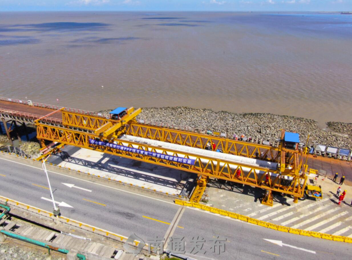 疫情防控、项目建设两手抓! 洋口港黄海二桥首榀箱梁成功架设
