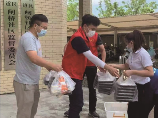 6日,崇川区融媒体中心慰问闸桥社区卡口防疫志愿者,餐饮店为闸桥社区防疫志愿者送爱心午餐,辖区热心居民还自购16箱饮用水慰问社区防疫志愿者。顾誉