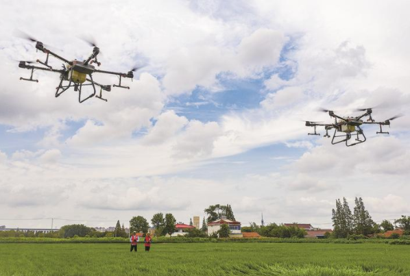 昨天,海安市孙庄街道通学桥村农民操控着植保无人机在水稻田间进行喷洒作业。近年来,海安市积极鼓励种粮大户引进植保无人机、联合收割机等现代农业机械,帮助农民增收,助力乡村振兴。 CFP