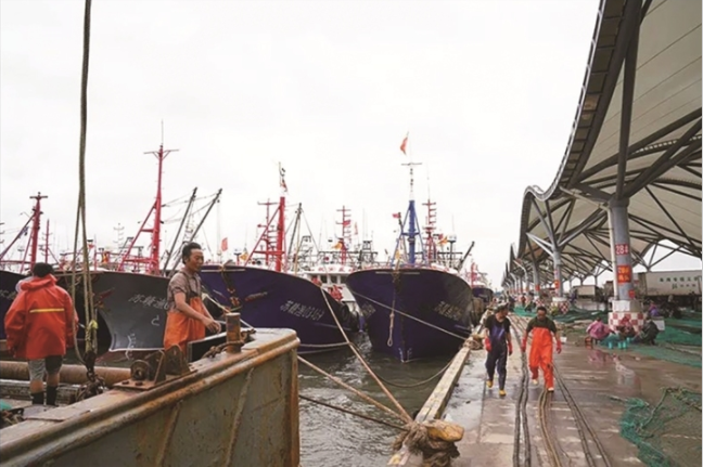 9月16日中午12点,为期四个半月的伏季休渔期正式结束。因台风“灿都”的影响仍在,为确保渔业生产安全,从昨天凌晨起,在符合出海条件后,600多艘插着彩旗的渔船陆续从吕四渔港出港,前往捕捞海区作业。 记者黄海