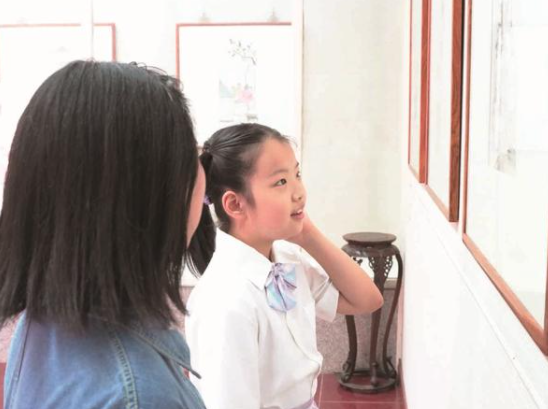 恰逢假期,当天有不少家长陪着孩子前来观展,同龄人的书画作品令中小学生更有亲近感。市民凌女士一边和儿子驻足欣赏,一边根据画面启发儿子朗诵与之匹配的古诗词,从山水画卷、诗词歌赋中领悟中华优秀传统文化的博大精深,提高孩子对美的感受、鉴赏能力。画展上,魏武等我市书画界知名人士建议家长,应当鼓励孩子快乐地学习艺术,多从艺术中汲取养分,让艺术成为陪伴孩子终身发展的兴趣爱好。