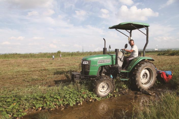 位于通州区五接镇开沙村三组的那乡那岛家庭农场通过发展特色农业种植,推行机械化耕作等方式提质增效,带动附近村民就业增收。该农场去年流转土地140亩,今年4月种植小香薯,目前已经收获100亩,亩收入6000元。图为近日,村民在家庭农场进行机械化作业。