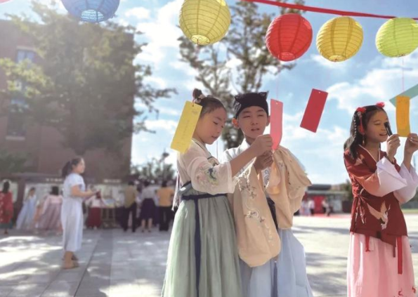 17日,南通市启秀市北初级中学联合启秀市北小学共同开展“携手共筑强国梦 佳节同抒爱国情”庆中秋活动。投壶、猜灯谜、学习汉家礼仪,学校希望通过多项活动的开展,增进师生们对传统文化的了解,感悟家国情怀。 记者沈樑