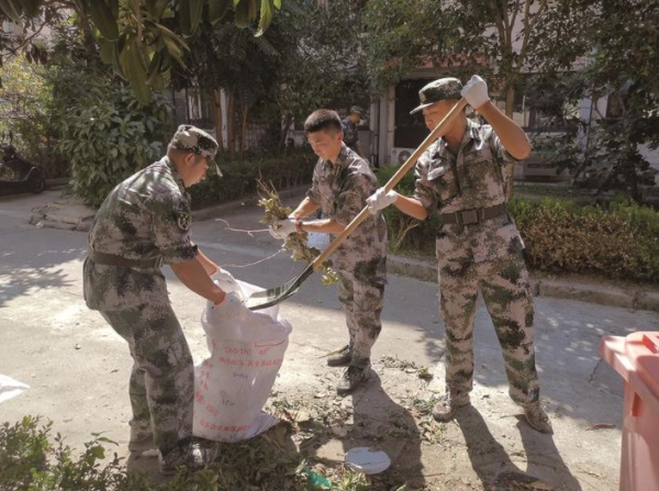 昨天,崇川区人民武装部组织民兵应急攻坚队伍支援学田街道文明城市长效管理攻坚行动。32名民兵分成5个小组,重点帮助社区清理草坪杂草、解决电瓶车乱排放等。 陆翔