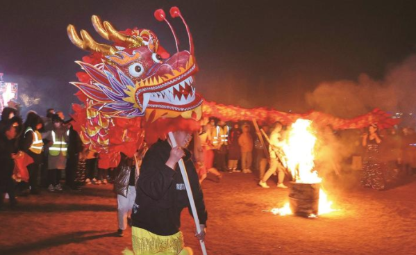 24日晚,通州区鲜花小镇上演夜舞龙灯、舞狮、打铁花灯等精彩活动,吸引了众多游客观看、互动,喜迎即将到来的新春佳节。 记者许丛军