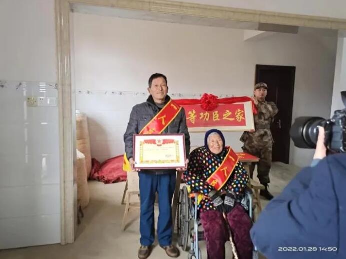 1月28日,启东市人武部、退役军人事务局、合作镇党委政府有关负责同志将“二等功臣之家”奖匾送到现役军人茅卫东家中,向其家属表示感谢和慰问。