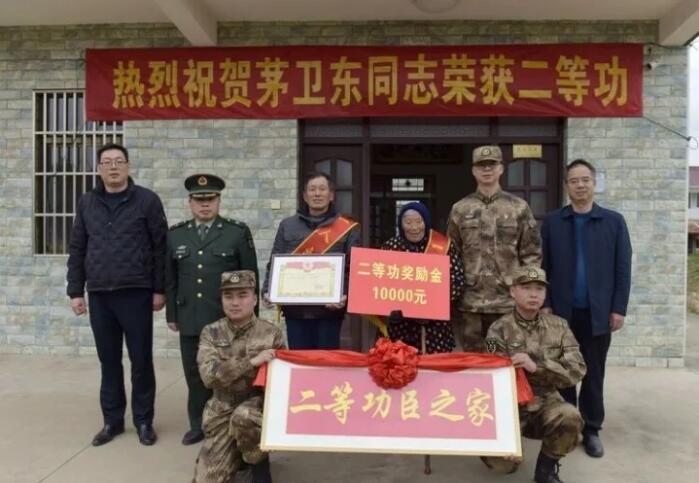 军地双方领导向茅卫东家属送上喜报、“光荣军属”绶带和“二等功臣之家”荣誉牌匾,介绍了茅卫东在部队的服役情况及其家庭生产生活情况,对茅卫东在部队所取得的成绩表示祝贺,感谢其家属为国家培养了优秀人才。希望茅卫东再接再厉,继续为国家和部队争光、为家乡赢得荣誉,希望家属一如既往支持茅卫东在部队的工作,让他继续在军营建功立业,争取再立新功。