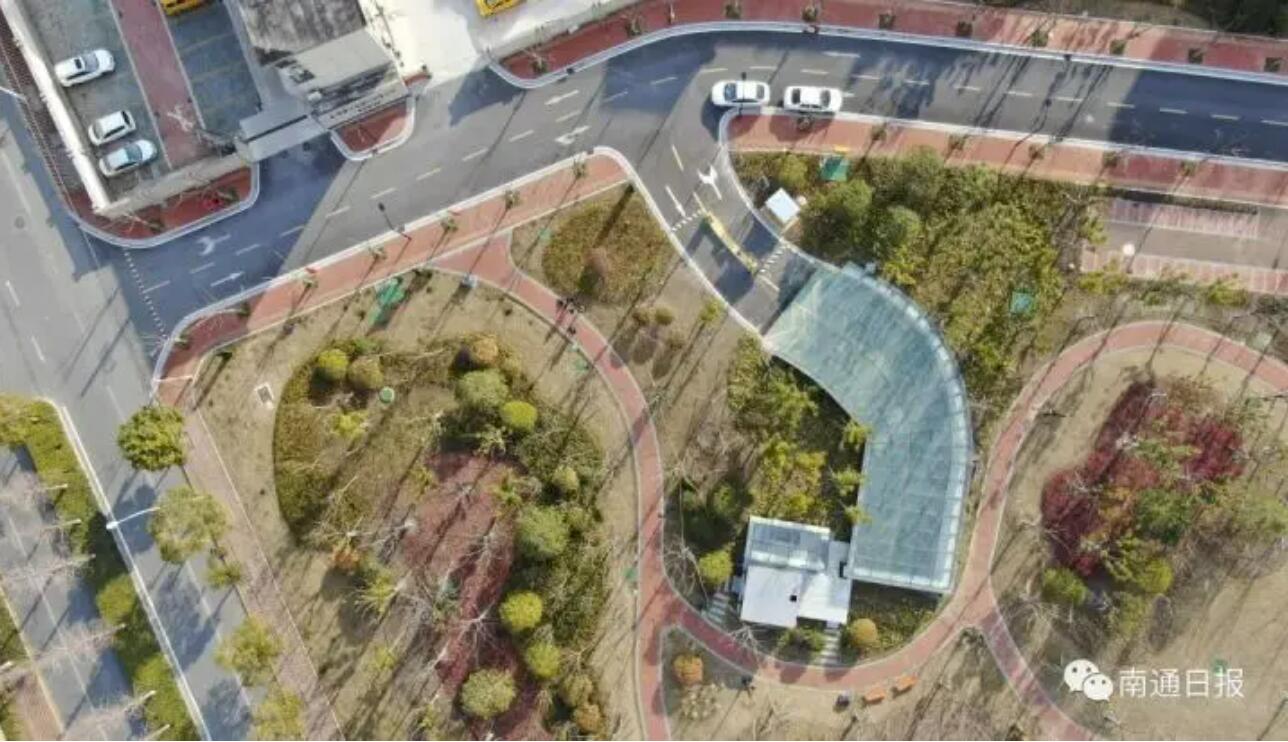 据专家介绍,生态停车场的建设是基于人文设计理念,基于对自然的尊重,在满足城市发展市民生活停车需求的同时,降低汽车废气物排放的危害,与周边领域相互协调的相得益彰,提升环境品质,使其与环境之间成为一个有机合体,使停车场的使用功能和生态功能协调一致。南通城建集团敢为人先,开始了造福子孙后代,建设五山滨江生态停车场的创举。2019年5月,该生态停车场建成,总面积1.41万平方米、停车位124个,有效缓解了滨江公园、狼山景区南门市民和游客的停车难题。该停车场根据“生态化、智能化、海绵化”要求,路面采用快速透水混凝土,下雨时,雨水会快速通过透水路面渗入地下,可以避免路面积水,避免雨水资源白白流失,最大限度吸收涵养水分。整个停车场种植了香樟、银杏、乌桕等100多棵树木,沿河畔还有一处樱花林,春季从狼山景区眺望,停车场是一片盛开的粉黛云霞,成为江边“花海”胜景。