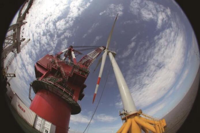 去年12月上旬,一台6.2兆瓦浮式风电机组样机在江苏海装问世。这款新机组和浮体平台,是降低深海远海风电项目建设成本的利器。