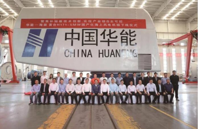 2021年5月22日,中国华能与中国海装联合研制的国产化大兆瓦海上风力发电机组下线。