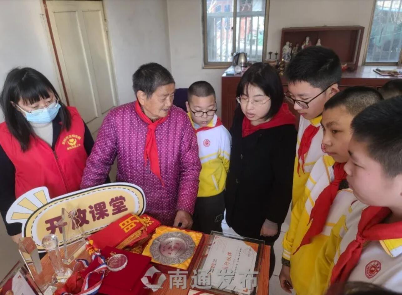 来到“棉衣奶奶”胡玉英的家里,红领巾志愿者们首先为胡奶奶戴上红领巾、献上鲜花,以表达对胡奶奶的敬意。大家围坐在“棉衣奶奶”身边,听奶奶讲述她助人为乐的故事。“小时候家里很苦,兄弟姊妹共八个,是政府给我们送来棉衣棉被。当时我就在想,等我以后有能力了,一定要回馈社会。帮助别人就是帮助自己。”从胡奶奶的话语中,六(6)班的红领巾志愿者们更加懂得了珍惜和奉献。