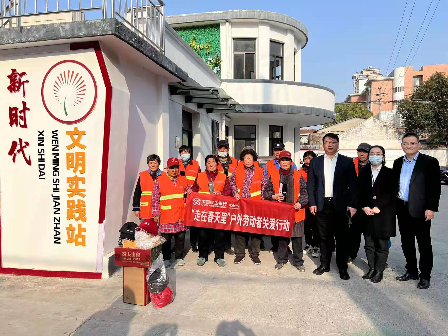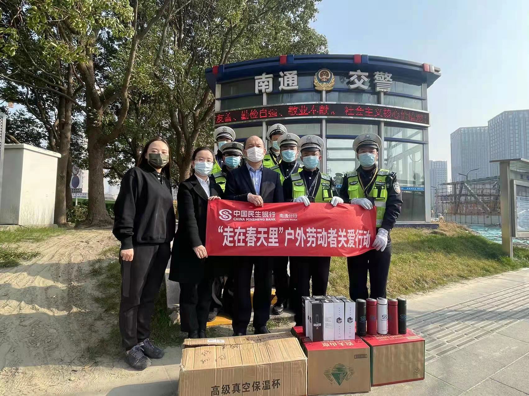 在这春天里,在南通市金融青马学院的号召下,民生银行南通分行开展了“走在春天里”户外劳动者关爱系列行动,为户外工作者们送去温暖、送出感谢,并开展征信知识、电信反诈等金融知识的普及宣传活动。一张张笑脸,一句句问候送出南通民生人的温情和关怀。