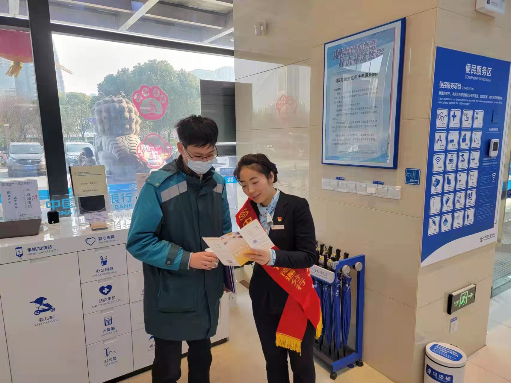 3月9日,在民生银行南通分行营业部,一位快递小哥手中拿着爱心保温杯高兴地说:“我经常在民生银行的爱心驿站休息,今天收到了礼物,心里更是暖暖的!”