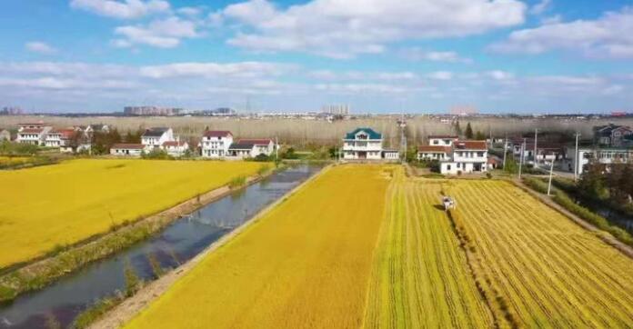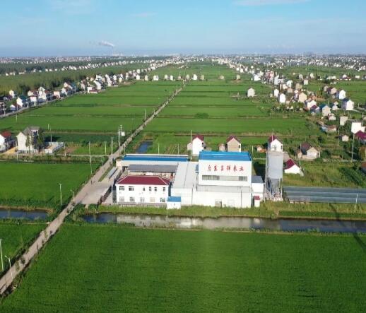 启东吕四港镇高标准农田,实施机械化作业。启东稻米产业联盟外景。