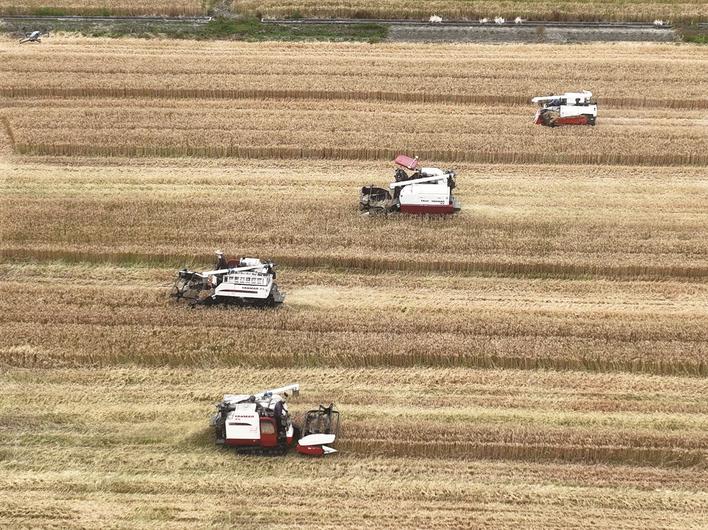 类似悦来镇高标准农田农技与农机、农艺的精准融合,奠定了南通夏熟丰收的基础。市农业农村等部门以及各地以万台现代农机,构建高水平粮食生产综合机械化体系,“人、机、地”精准对接,巧妙融合。市农业农村局局长陈敢介绍,“近4000台粮食烘干机全面投运,确保粮食生产全程不落地;7540台本地农机,与1520台外地来通农机联手,完全满足夏收需要;投入插秧机10213台,夏种无忧。”作栽站站长郁伟介绍,夏收夏种序时展开。全市69.9万亩油菜已于5月30日收获完毕,比上年提早2-3天。截至6月21日,全市水稻已播栽过半,夏播玉米已播栽近9成。