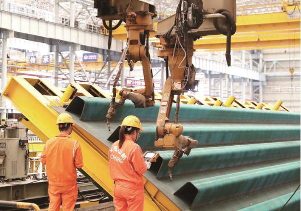 12日,无人机航拍中铁山桥(南通)有限公司钢梁智能制造车间。中铁山桥(南通)位于如皋港区,隶属于世界500强的中国中铁股份有限公司。今年上半年,该公司累计生产钢结构6.8万吨,实现营业收入9.9亿元。