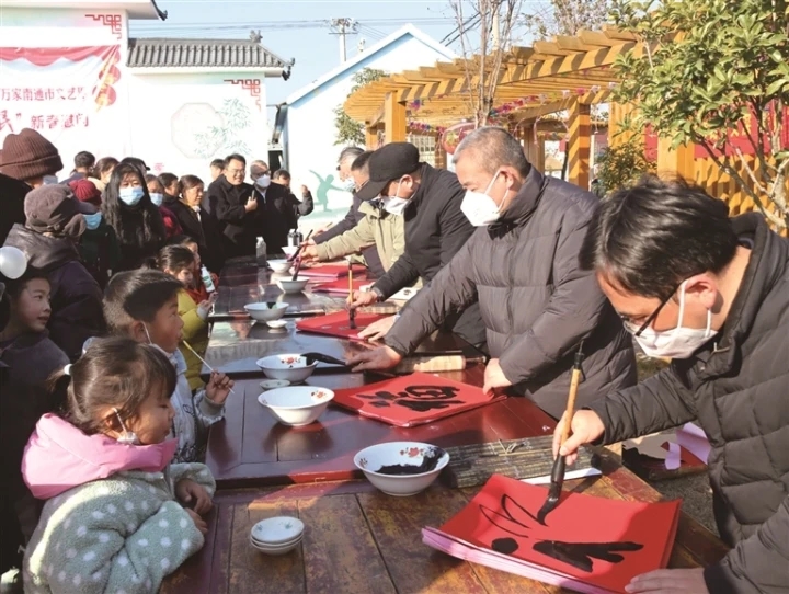 春节将至,处处洋溢着节日的气息。孙淼、杨谔、周时君等书法家即兴书写“福”字和春联,为当地百姓送去诚挚的新春祝福。村医周克富说:“市文联把文化活动送进家门口,把春联和福字送到我们身边,我们感到很高兴,也很幸福。”