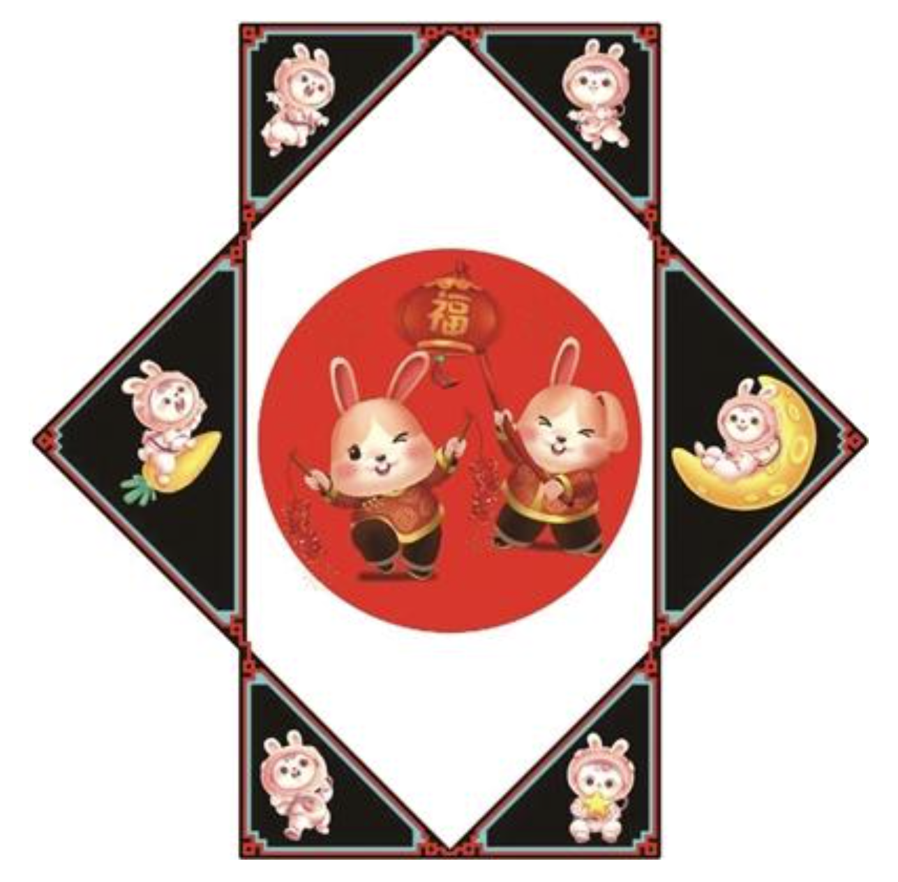 此次创作,胡智更加注重传统与现代的融合。鹞布上,送福兔、财神兔、年画兔,种种传统元素与兔的结合,代表着新年喜庆吉祥、财源滚滚、时来运转的美好寓意;航天兔、考神兔,一类活泼传神的“卡通兔”,寄托着人们对生活的祝福和期待。