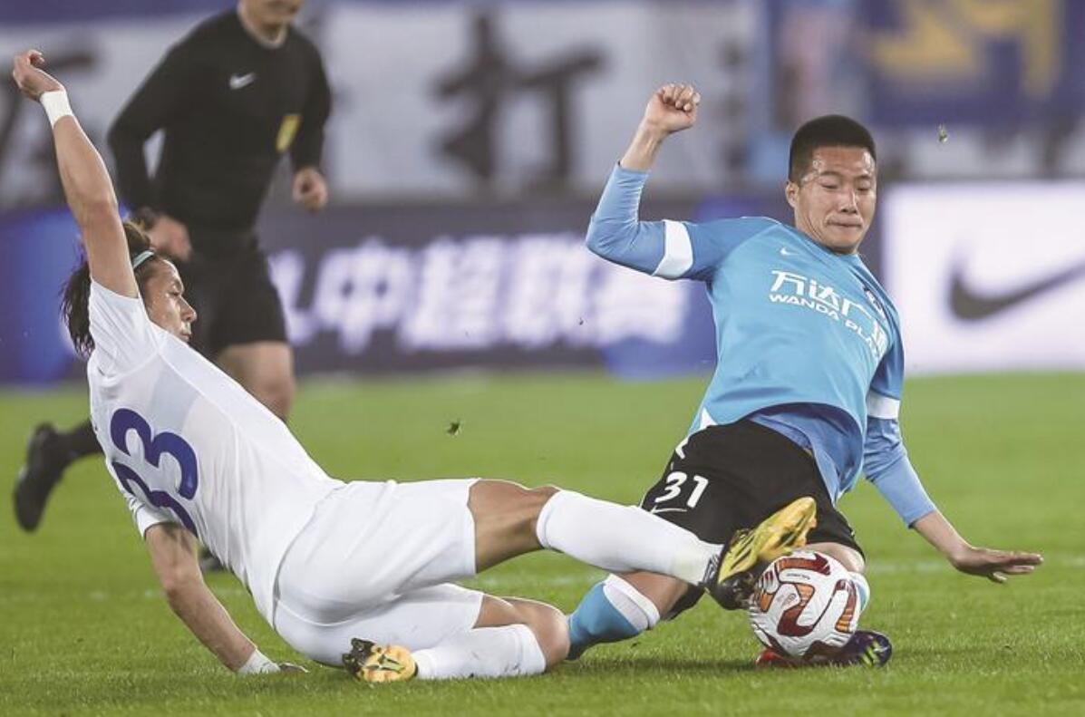 南通支云队(左)客场对阵大连人队。中超联赛官方提供