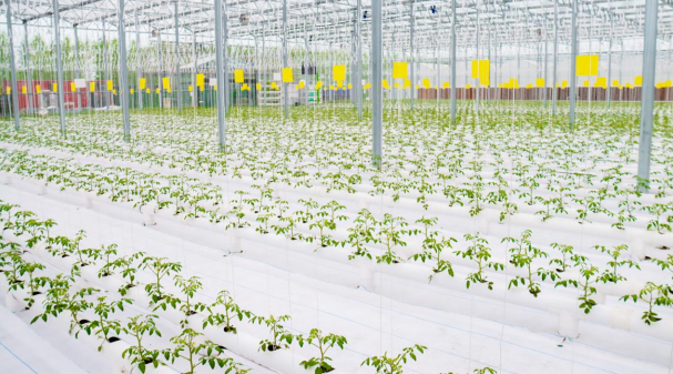 进入南通杨天农业示范基地内的温室智能大棚,展现在面前的是一个清新绿色的标准化农业生产车间。一排排整齐划一的水培管道上,一簇簇嫩绿色的小番茄苗儿从定植孔中冒出来,舒展着叶片。
