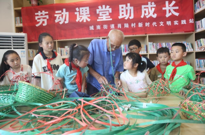 “编藤非常大家的考验耐心,编织时每一根藤都要保证笔直,并且藤与藤之间要分布均匀,这样编织出来的藤面才能光滑工整……”在肖陆村农家书屋,姚伯成正手把手地向孩子们传授编织“秘诀”。