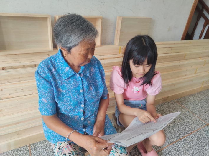 “我们村有许多老年人,考虑到他们因视力下降,读书看报不方便,所以我们就想到邀请小朋友,和老年人结对,通过老幼携手的方式共同阅读。”天堡社区党总支书记丁帮宏说道,边读边聊的活动形式,让老年人能够更好地畅谈书香滋润心灵,体验到一种老有所学、老有所乐的情趣。同时也激发了孩子们的阅读兴趣,让他们真正从书本中找到乐趣。