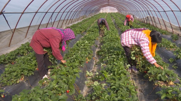 这片草莓大棚也带动了当地村民们共同增收致富。“在草莓园干活,离家近,能照顾家庭。”村民王玉兰一边采摘一边高兴地说,没有农活时,她就到草莓大棚当采摘工,一个月还有2000多块钱的收入。据介绍,草莓园已为当地80余名村民提供了家门口就业的机会。