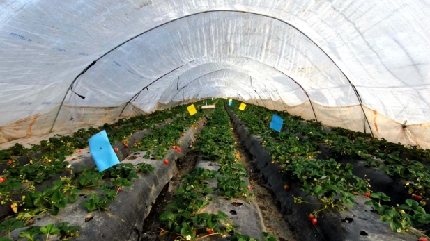 “我们草莓的施肥主要是豆饼,它可以提高土壤的钾肥,能提高草莓的糖分。草莓都是蜜蜂授粉、水肥一体化、防虫灯捕虫,绿色无公害。根据品种和质量的不同,批发价每斤18元到30元不等。”袁兵表示。