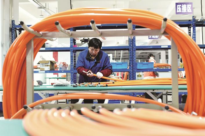昨天,工人在海安高新区内的江苏恩达通用设备集团车间赶制新能源乘用车高压线束订单。正值年末,海安各工业企业开足马力抢效率、赶订单、忙生产,全力冲刺“全年红”。 顾华夏摄