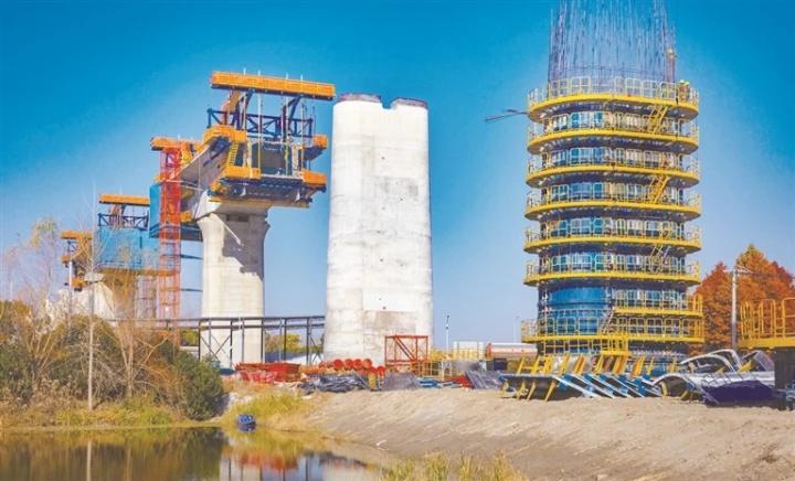 昨天,沪渝蓉高铁南通地区站前一标,跨沈海高速兴仁收费站过线桥工程紧张施工中,2024年最后一天,工人们保质量,保进度,以最好的姿态迈进2025年。 钱伟章摄
