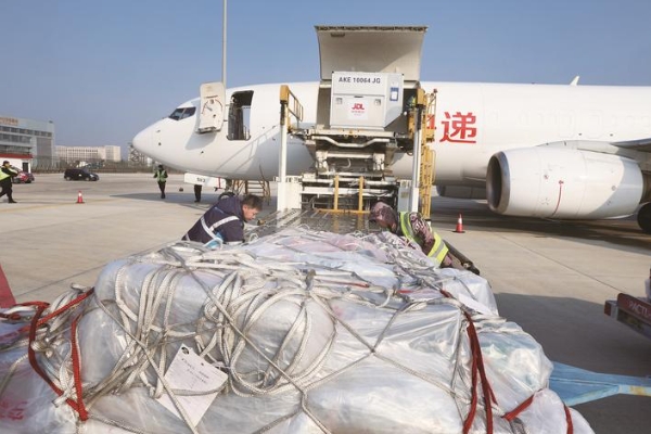 昨天,工作人员在南通兴东国际机场卸运货物。新年伊始,南通兴东国际机场国际国内货运繁忙。2024年,兴东国际机场按照“调结构、优布局、提增量”的总体思路,奋发有为加速度,铆足干劲拓市场,客货运吞吐量分别提前45天、43天超过2023年全年水平,全年客、货运吞吐量增幅双双超过10%。 记者 许丛军摄