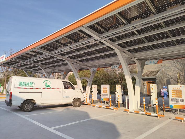 如何助力新能源车车主充电时打发时间?“考虑到三鲜街为美食一条街,有不少新能源送货车经过,街道借助充电站西侧约50米处的两处岗亭,设立了‘小哥驿站’,可以让小哥临时休息用。另外,充电站北侧还有中石油的便利店,想购物、想休息都可以。”狼山社区党委书记肖清华介绍。