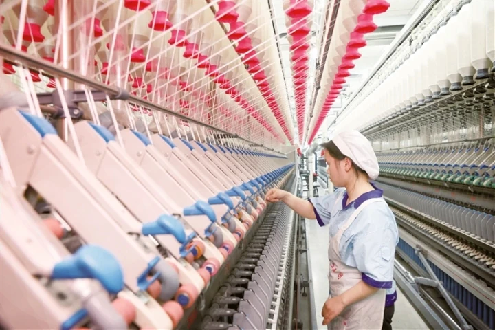 17日,位于崇川区的江苏大生智慧纺纱工厂生产繁忙。该智慧纺纱工厂是国家工信部和发改委认定的“十四五”全国第一个“智慧纺纱工厂”,也是全国纺织行业首个运用5G数据传输技术和智能管理云平台的工厂。工厂万锭用工小于10人,生产效率在数字化纺纱车间基础上提高了20%。 记者 许丛军摄