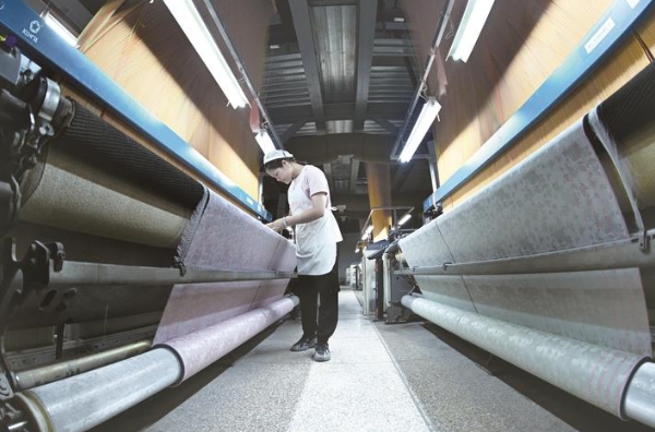昨天,在海安鑫缘茧丝绸集团有限公司织造车间,纺织工人正操作智能提花机生产真丝坯绸。智能提花机通过集成人工智能算法,快速精确织造出的绸缎上有花朵、蝴蝶等多种图案,富丽鲜艳。