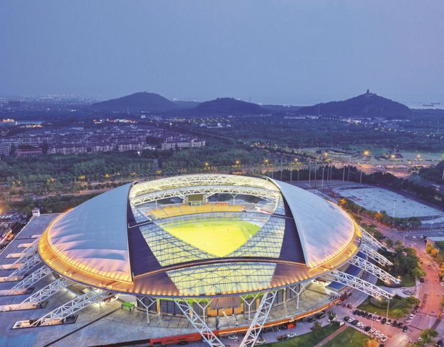 图为昨晚拍摄的升级改造后的南通体育会展中心体育场夜景。31日晚,这里将迎来“苏超”第十轮南通队对阵苏州队的比赛。南通体育会展中心体育场被称为中国“南鸟巢”,是我国第一个采用巨型活动开启式屋盖的体育场馆。 记者许丛军