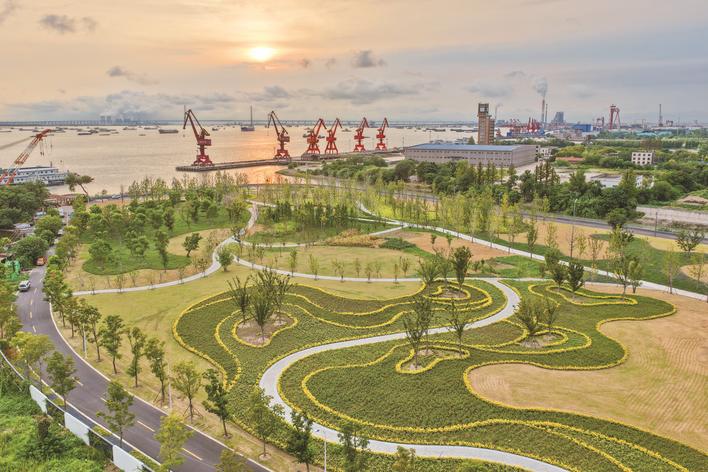 昨天拍摄的长江崇川段任港河景观带新貌。任港河景观带项目东至外环西路,西至长江,占地12公顷,打造了渔湾烟雨、任港印痕两大特色文化分区,结合百年前的双楗遗址,尽可能恢复任港历史文化记忆。除了景观打造,项目还包含了水利堤坝工程,包含全长1.3公里的新建堤顶路和绕行路,堤顶路与北滨江景观带道路连通,满足市民出行、健身、赏景需求。