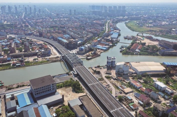 图为记者近日拍摄的大洋港桥新貌,大桥预计9月底全线建成通车。作为通扬线通吕运河段航道整治工程的重要组成部分,该桥将显著提升航道通航能力和区域公路通行水平。 记者许丛军