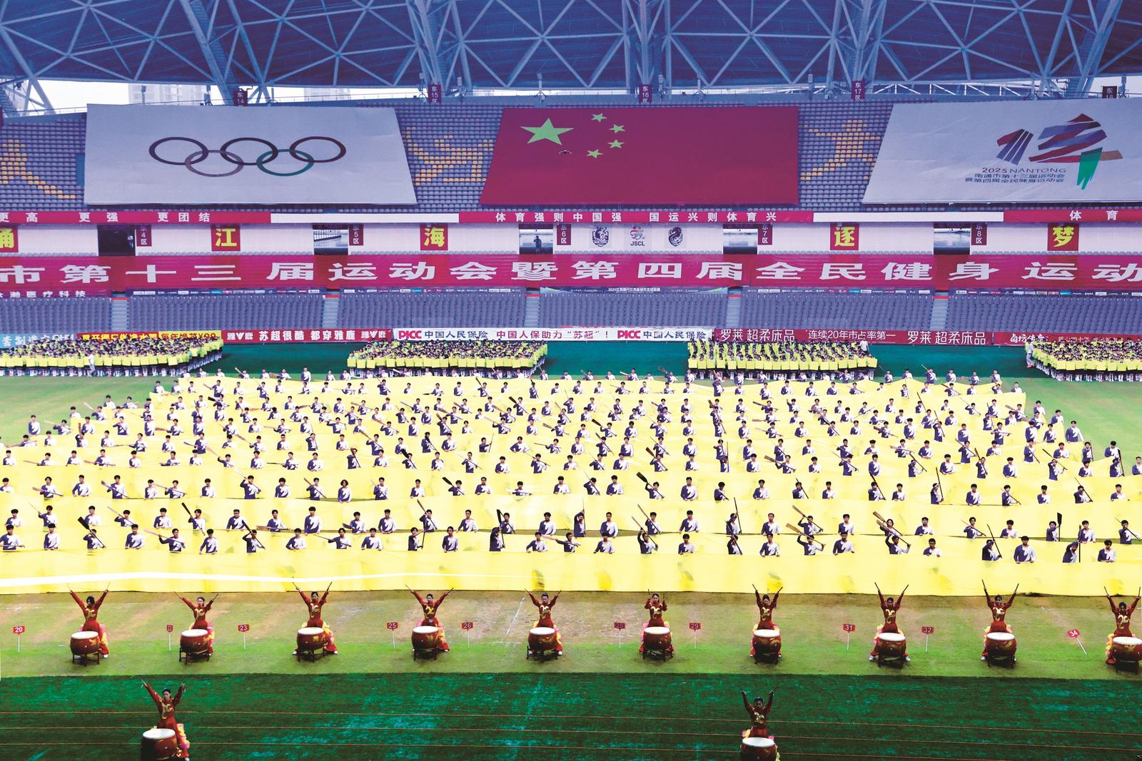 昨天,南通市第十三届运动会暨第四届全民健身运动会在南通体育会展中心体育场开幕。本届市运会以“激情江海、活力南通”为主题,全面检阅近年来我市体育事业发展成果。 记者徐培钦