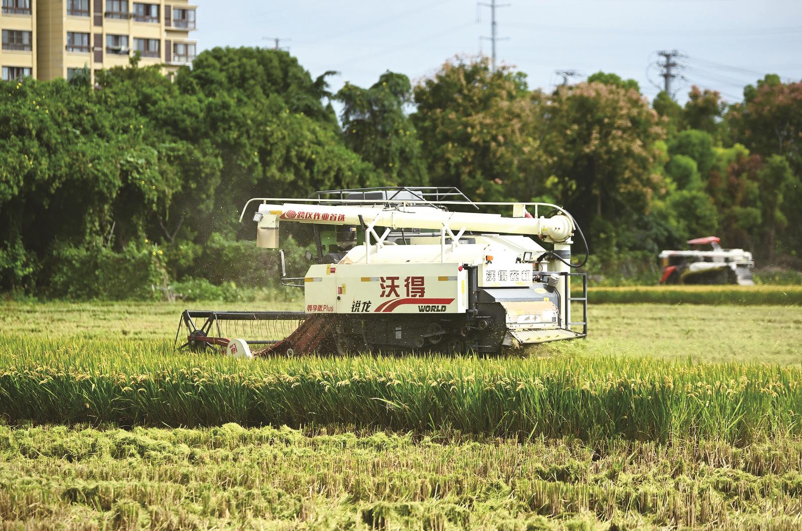 如东卫星家庭农场的500亩“南粳9108”国庆稻从10月3日开镰,在5台从东北远道而来的跨区收割机高效作业下,短短4天就完成了整片稻田的收割,新收的稻谷已被上海米厂订购一空。经测产,这批潮稻平均亩产约855公斤,农场负责人顾艳星笑着说:“这波‘国庆稻’收完,后续还有1200多亩晚熟稻,预计10月20日后就能开镰,今年又是个好年景。”